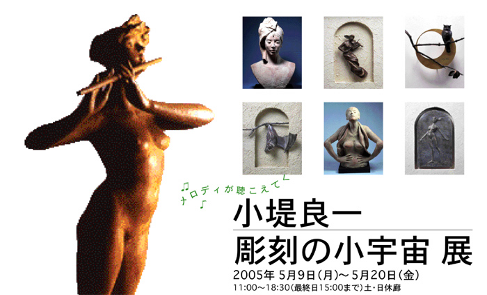 今回のopening partyでは小堤先生20年来の趣味で続けてらっしゃるフルートの演奏を披露!その演奏を聴きにわざわざ遠方から来られた方もいるほどなかなかの腕前。趣味とは思えません。芸術家の才能は多岐に渡るのだなぁと本当にびっくりさせられました。両脇に横笛を構えた作品が2体。つられて演奏しだすかのようでした。小堤先生はほぼ毎日、在廊予定ですので初日いらっしゃれなかった方もどうぞまだまだ間に合います。来廊お待ちしております 。