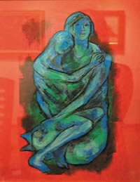 母子像 \294,000 これは今回の展示作品の中で色を出すのに最も悪戦苦闘した作品です。反対色をうまく融合させています。この作品では特に背景である赤を出すのに何度も試行錯誤しました。